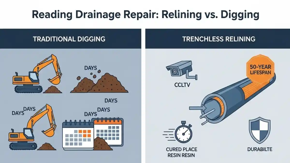 Avoid costly, messy excavations. Compare Farnham Drain Relining vs Digging to save your home, time, and money with our expert, minimally invasive, and durable no-dig repair solutions for local drains.